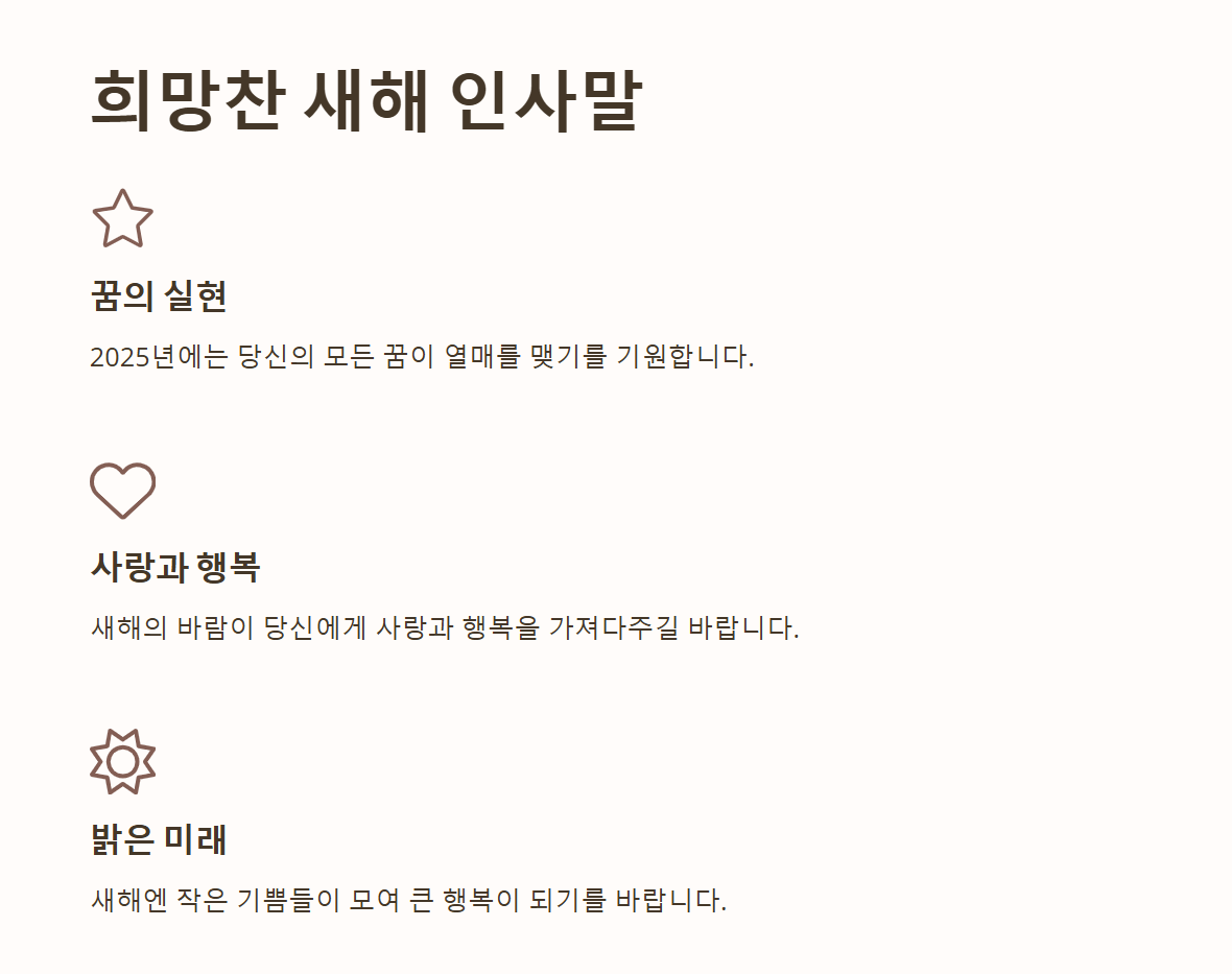 새해에는 더 빛나는 당신을 기대합니다. 🌟 - 2025년, 당신이 가는 모든 길 위에 꽃이 피어나기를 바랍니다.